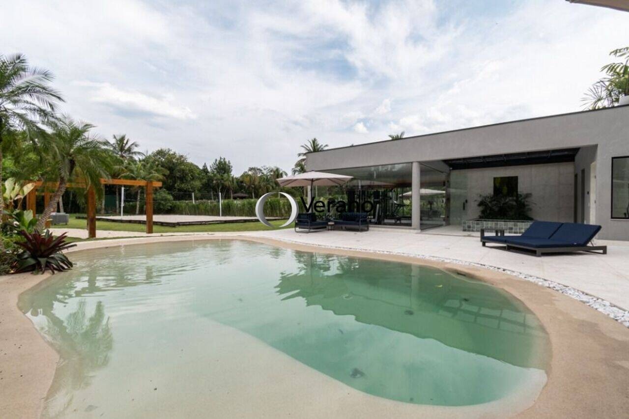 Com infraestrutura de última geração, a casa conta com sistema fotovoltaico, biodigestores, aquecimento solar central, ar-condicionado central VRF, e automação. Além disso, há um teatro retrátil automático, sistema de água de reuso e drenagem automatizada. A área externa é um verdadeiro paraíso, com gazebo suspenso com espelho d'água, quadra de beach tennis, academia, spa coberto com sauna e jacuzzi, e uma piscina de areia aquecida. O imóvel possui 2060m² de terreno e 1676,29m² de área construída, oferecendo o máximo de luxo, conforto e inovação.