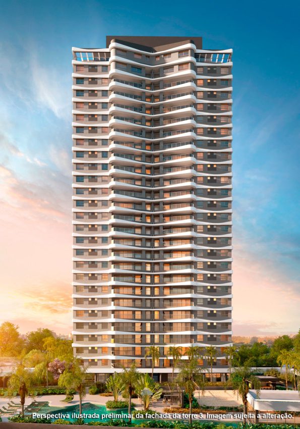 O projeto contempla três torres residenciais, com unidades que variam de 124 m² a 237 m² nas plantas tipo, além de coberturas duplex que podem chegar a impressionantes 486 m² de área privativa. As opções de planta incluem 3 a 4 dormitórios, sendo a maioria com suítes, e oferecem de 2 a 4 vagas de garagem, com destaque para coberturas que podem dispor de até 7 vagas. No total, o empreendimento contará com cerca de 275 unidades.