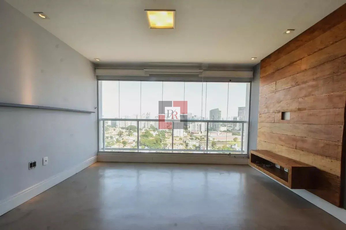 Apartamento com 68m² sendo: 1 suíte com armários planejados e cama de casal, sala de estar com sofá, painel de TV e ar-condicionado, sala de jantar com mesa e cadeiras, cozinha com armários planejados e eletrodomésticos, lavanderia com aparelho de gás e misturador de agua quente e fria, varanda com uma vista fantástica para a ponte Estaiada, o apartamento fica em andar alto.