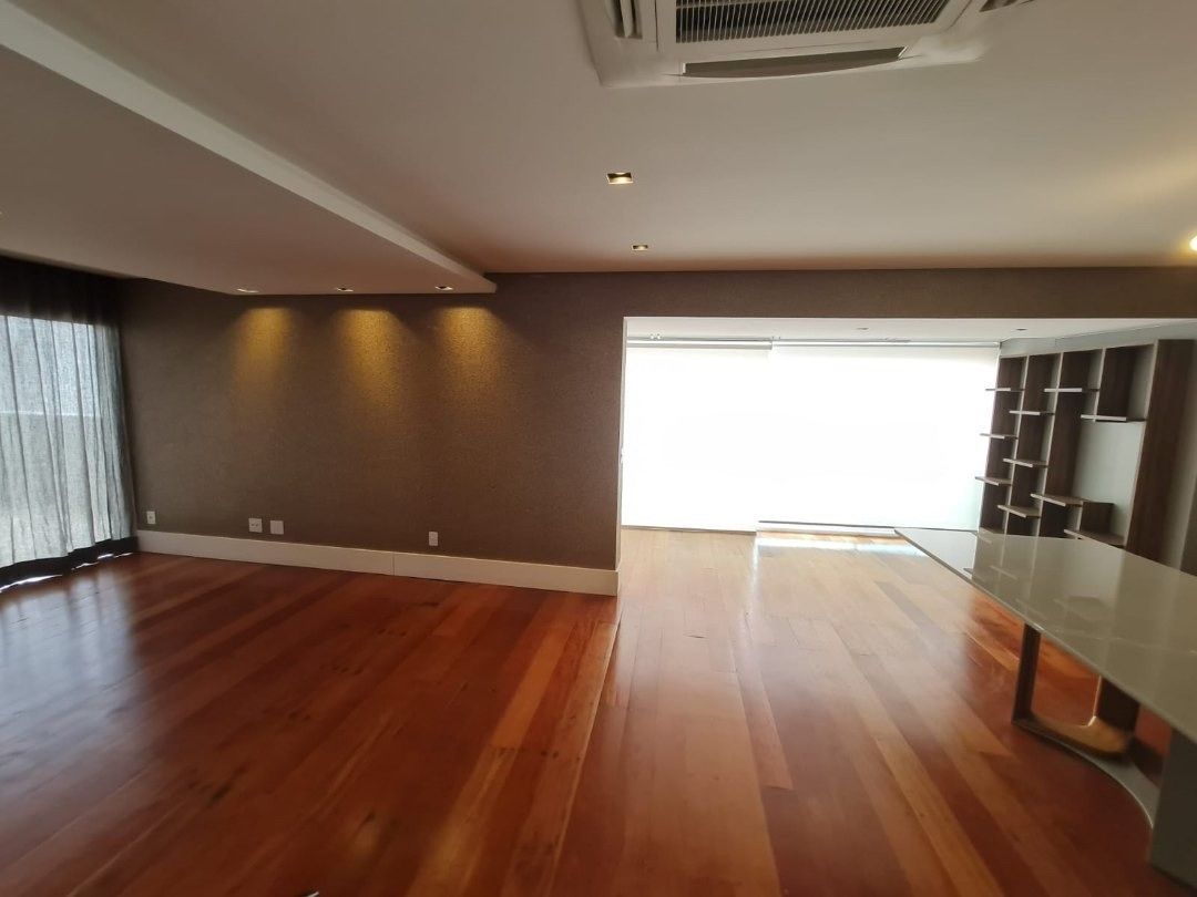 Esta cobertura duplex no Condomínio Absolute Moema de 300m² possui ambientes amplos e acabamentos sofisticados. O piso inferior conta com um living espaçoso, cozinha americana com armários planejados, e um terraço gourmet com jacuzzi e vista espetacular. O piso superior abriga quatro suítes, todas com armários embutidos, sendo três delas com closet.