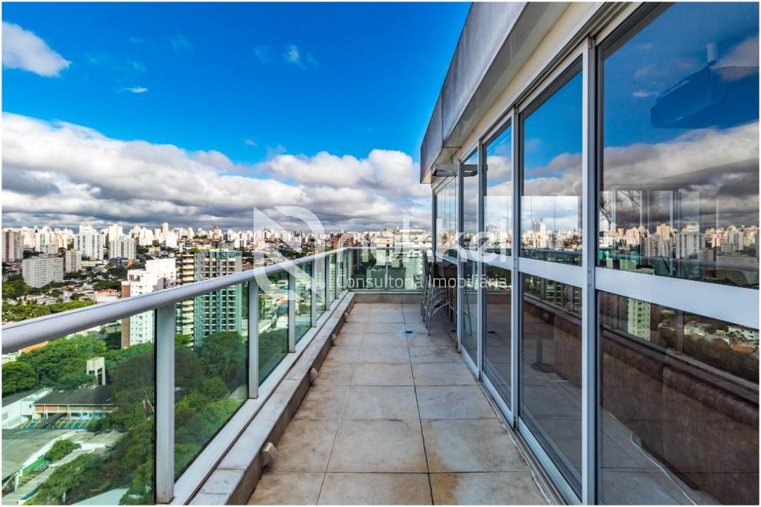 Esta cobertura triplex em Moema no Condominio Torre de Cristal é ideal para quem busca espaço e conforto. No andar inferior, são 3 amplas suítes com ar-condicionado, sendo a principal com varanda integrada. O andar do meio possui salas de jantar e estar integradas à varanda com piscina. A cozinha é equipada e iluminada, com área de serviço e um quarto adicional. O andar superior conta com sala de cinema e uma área gourmet com churrasqueira. A propriedade ainda possui 6 vagas de garagem e um depósito duplo.