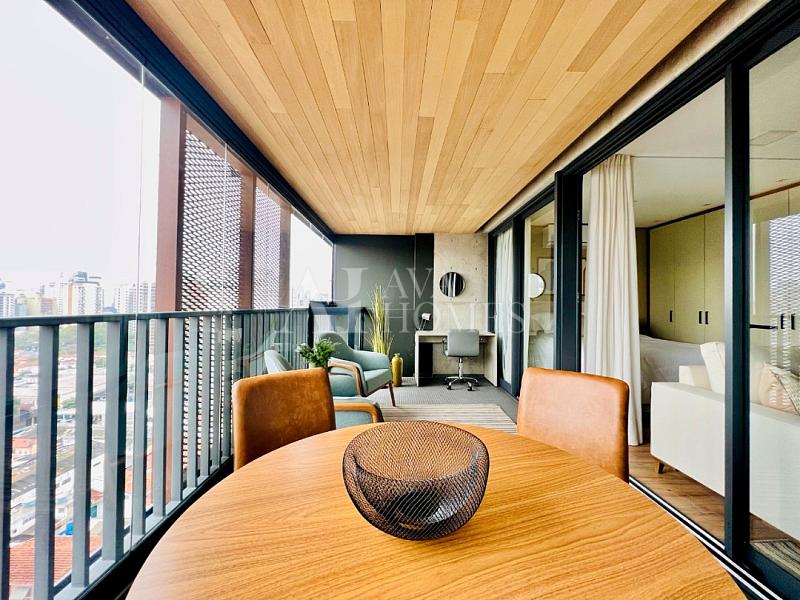 Charmoso, funcional e com acabamentos de alto padrão, este belíssimo studio de 49 m² está completamente mobiliado e pronto para morar, ideal para quem busca praticidade sem abrir mão de conforto e estilo.