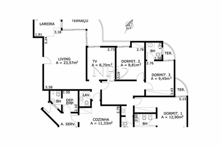Serviço: Cozinha | Área de serviço | Dormitório serviço | Bwc serviço.