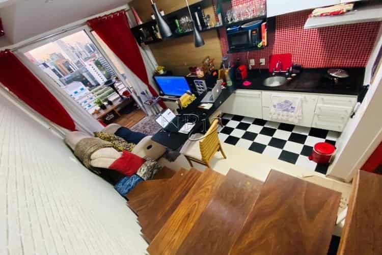 Apartamento com pé direito duplo, 17 andar, 57m2, localizado na região do Brooklin a menos de 5 min da Av e estação de trem Berrini. Linda vista para marginal pinheiros(shop Cidade Jardim). Condomínio tem a opção de limpeza e arrumação diária por 300 reais no mês. Ap ideal para no máximo duas pessoas.