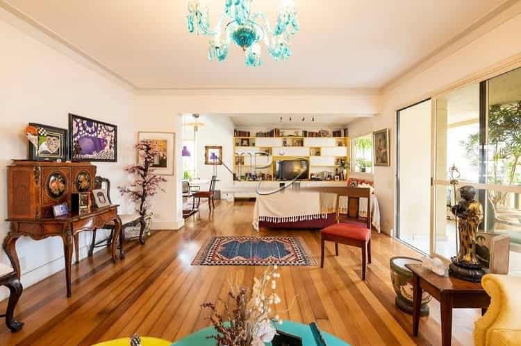 Amplo e iluminado, com 3 suítes e sala íntima, originalmente um 4º dormitório. Planta quadrada, com grande potencial de integração dos ambientes. Sala de estar em "L" com jantar, ambas com terraço. O terraço principal é voltado para um belíssimo jardim.