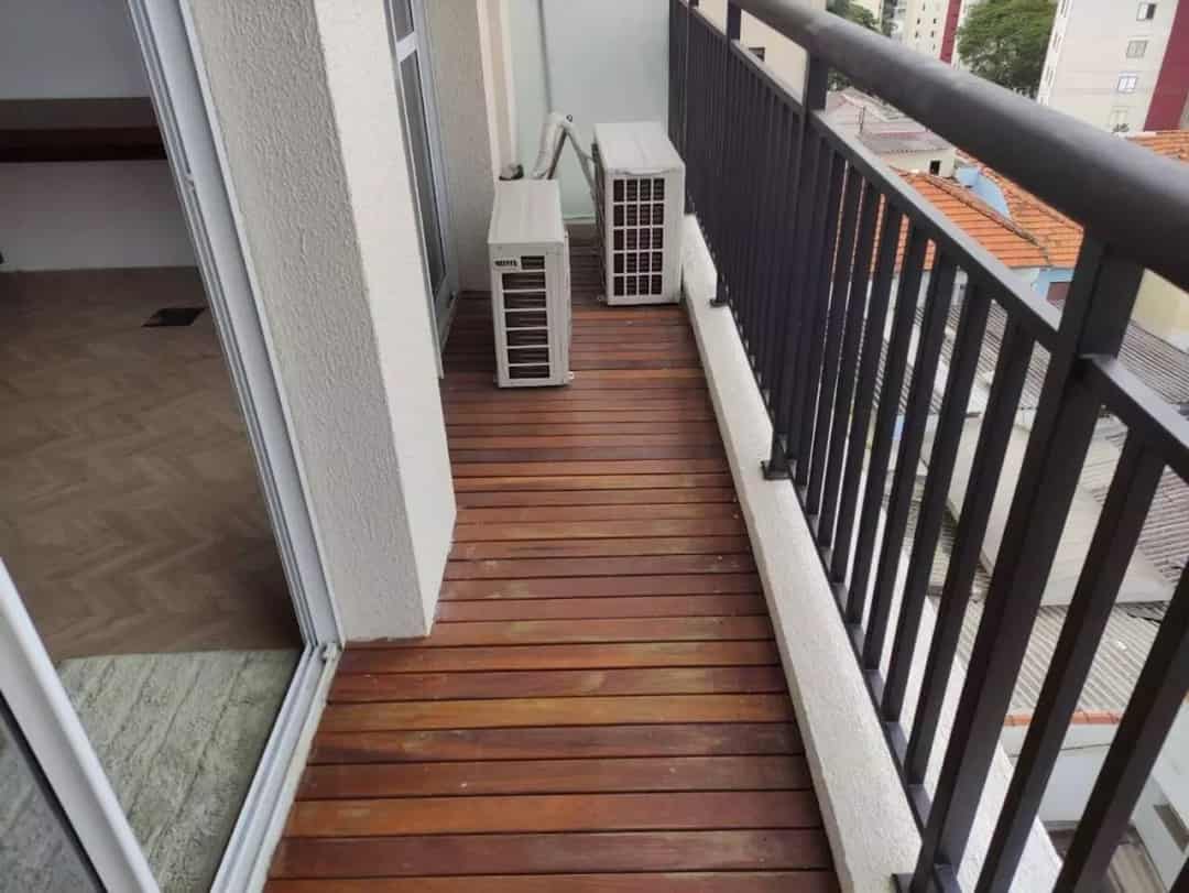 Unidade de sala comercial no condomínio Gallery Offices, na Vila Mariana, com 38m². A sala possui piso elevado, com acabamento em piso laminado Chamonix Duraflor. Equipado com duas evaporadoras, o espaço conta com duas portas balcão para uma varanda, que recebeu um deck de madeira sob medida realizado pela Fazenda Deck. A vista da sala é livre e com uma vasta contemplação do bairro.