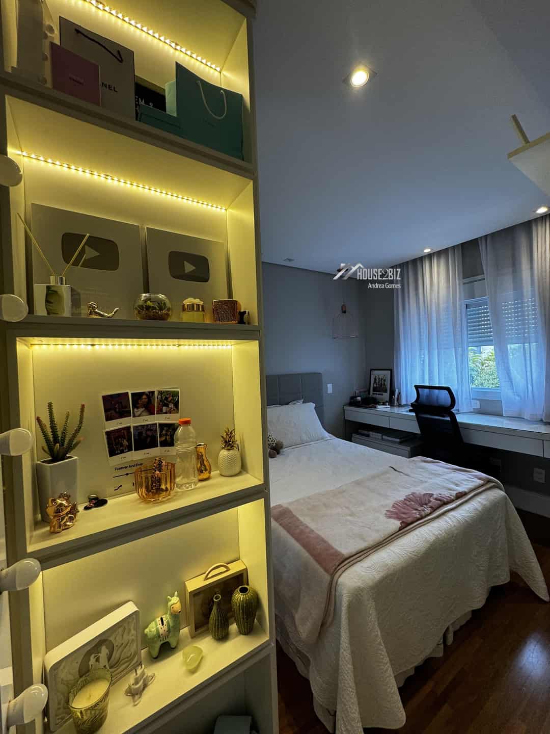 Ao entrar, você é recebido por um hall de entrada que leva diretamente à ampla sala de estar. Este ambiente é iluminado naturalmente, graças às janelas que proporcionam vistas panorâmicas da cidade. O design interior é marcado por acabamentos de qualidade, como pisos de madeira nobre e detalhes elegantes nos banheiros, garantindo uma atmosfera de luxo e conforto.