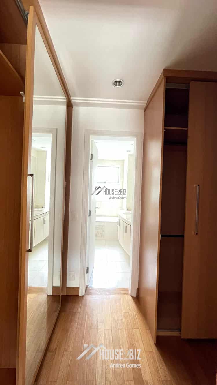 O apartamento possui quatro quartos bem dimensionados, incluindo uma suíte master verdadeiramente luxuosa. A suíte master conta com um espaçoso banheiro privativo, completo com banheira de hidromassagem e acabamentos premium, além de um closet amplo e bem organizado.