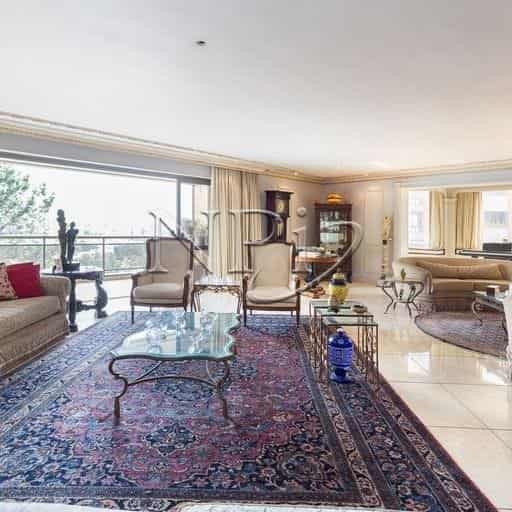 Sala com 150 m², piso de mármore, com lareira e terraços, Home Theater, sala de jantar, ampla cozinha com dispensa, dois quartos de empregada com banheiro, lavanderia, varandas na sala e em todas as suítes. Conta ainda com cinco enormes vagas na garagem no primeiro sub-solo mais depósito. No condomínio, quadra poliesportiva, maravilhosa piscina aquecida, enormes áreas de jardins, sala super completa de ginastica, área para crianças com playground e grama sintética, salão de festas com cozinha e banheiros, dois elevadores sociais grandes, e um elevador de serviço enorme. Posto de lavagem de carro no 3° Sub-solo. 7 vagas de carro para visitantes