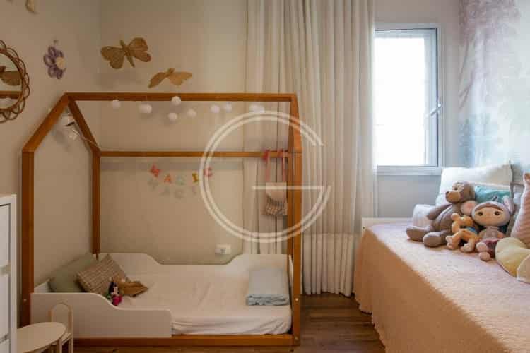 O apartamento possui 137 m², contando com 3 dormitórios, duas suítes, três banheiros e duas vagas.
