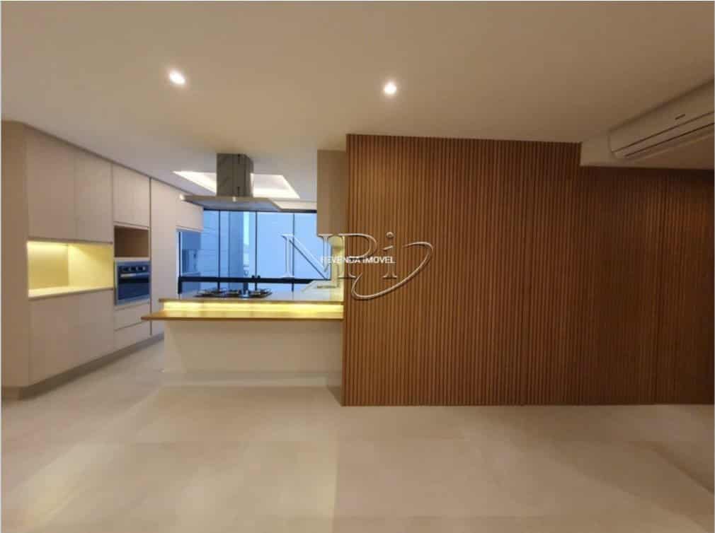 A cozinha é moderna e funcional, equipada com armários planejados de alta qualidade que garantem aproveitamento inteligente do espaço. A cozinha tem acesso direto à sala de jantar, proporcionando uma integração perfeita entre os dois ambientes.