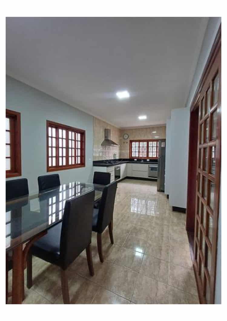A cozinha funcional é acompanhada de uma copa, oferecendo praticidade no dia a dia. Nos fundos, destaca-se uma área de lazer completa, com churrasqueira e uma suíte independente, além de uma área de serviço discreta e funcional.