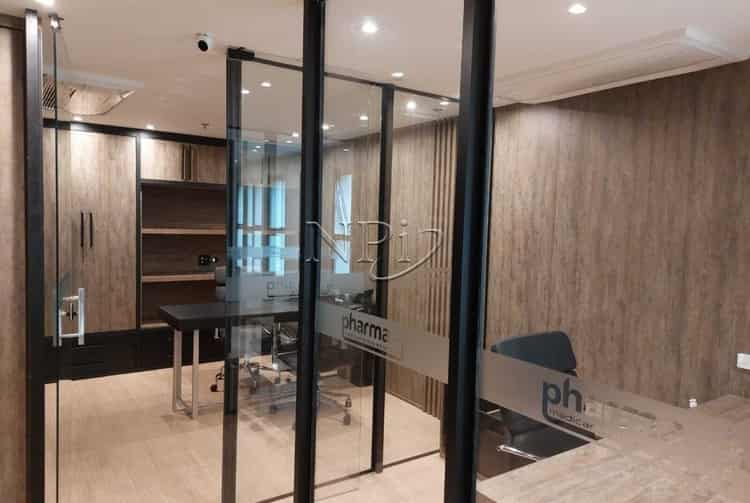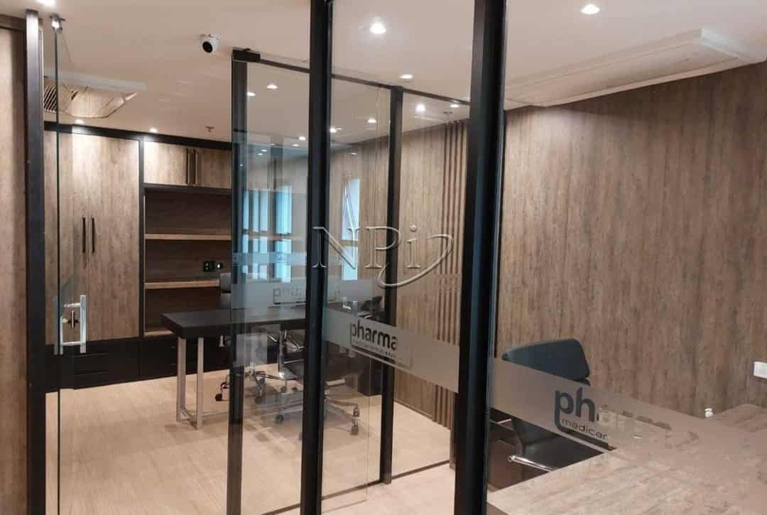 O diferencial da sala está nas paredes de vidro que separam os ambientes, proporcionando uma excelente visibilidade de todo o espaço. Isso cria uma atmosfera arejada, iluminada e integrada, ideal para promover uma sensação de amplitude e conectividade entre os setores da empresa. Além disso, o ambiente conta com marcenaria planejada, oferecendo um acabamento sofisticado e otimizado, perfeito para organizar equipamentos, documentos e criar um ambiente de trabalho funcional e elegante.
