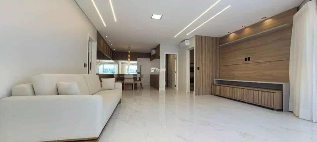 Além da decoração sofisticada, o imóvel conta com um painel ripado que adiciona um toque contemporâneo e elegante aos ambientes. A cozinha é planejada, com armários de alto padrão e espaço otimizado, integrando-se à sala de jantar de forma harmônica.