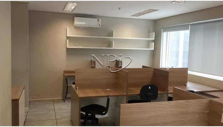 O conjunto já está pronto para uso, com 50m2, 1 vaga de garagem, piso, forro, luminárias, banheiro, copa, terraço e ar condicionado e mobiliário.