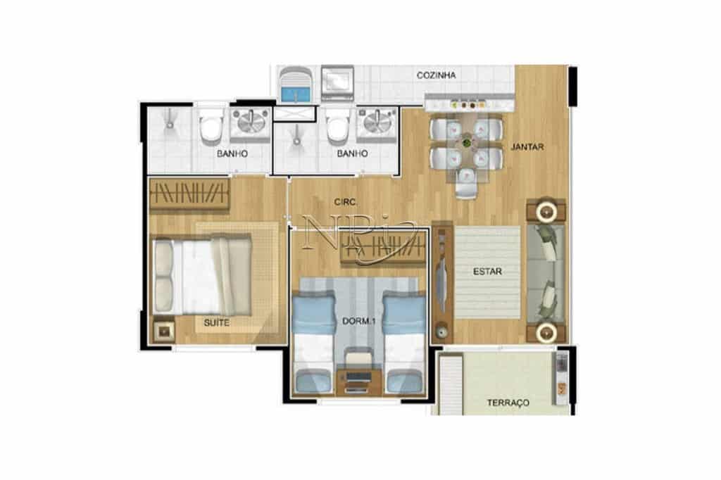 Íntimo: 1 Dormitórios | Banheiro social | 1 Suíte.