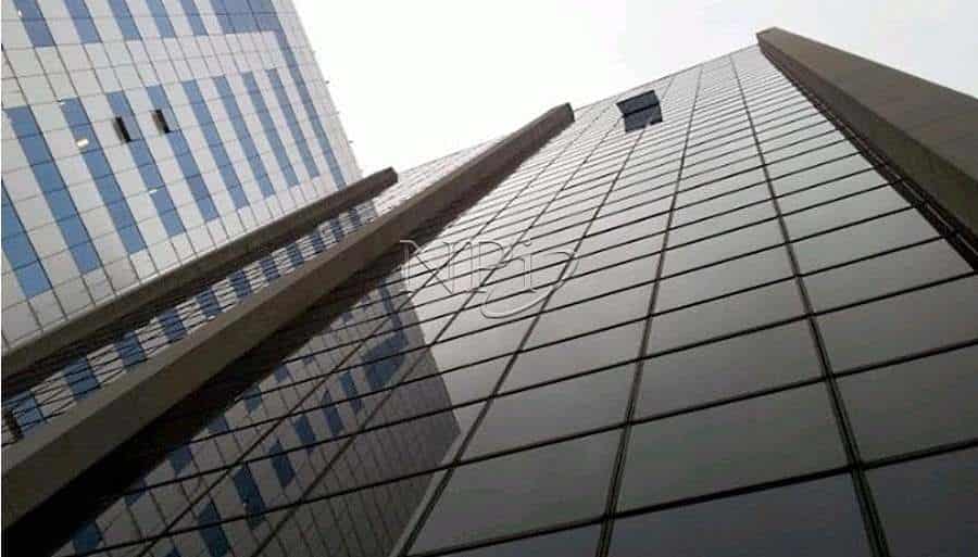 Edifício com fachada em vidro.