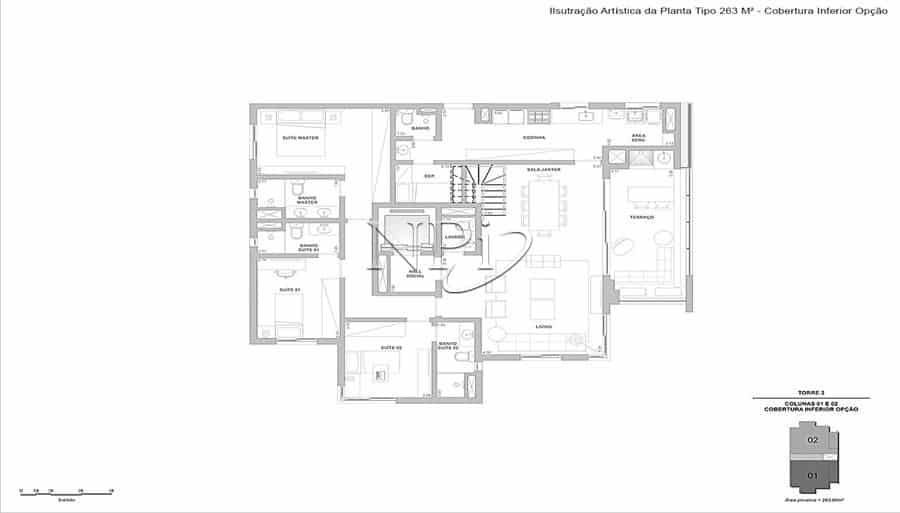 Apartamento a partir de 263 m² de área útil.