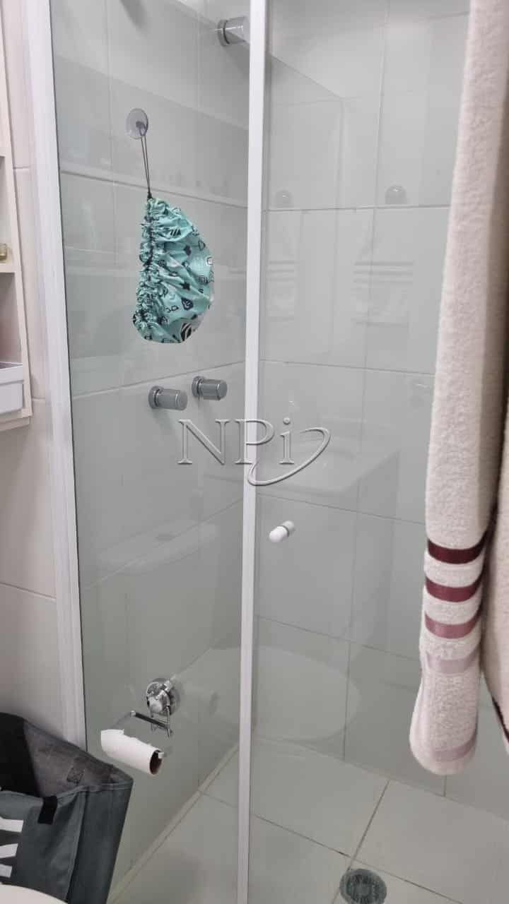 O banheiro é bem projetado, com acabamentos contemporâneos e acessórios de qualidade. Possui um chuveiro com boa pressão de água e espaço suficiente para movimentação confortável
