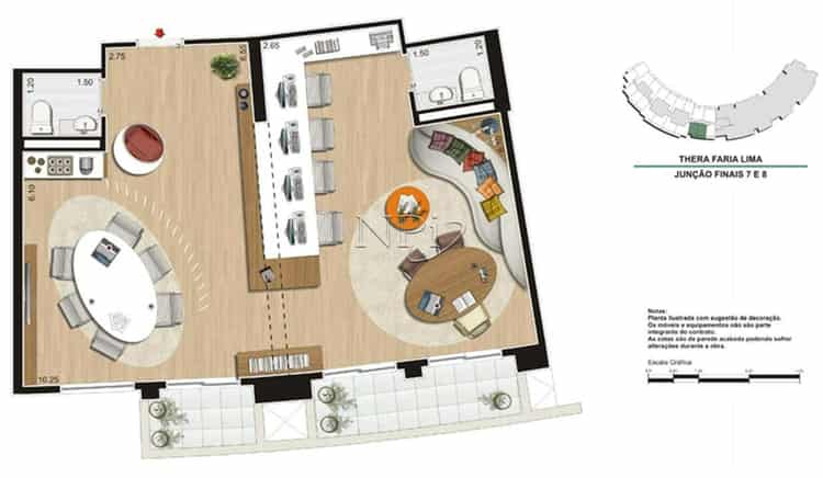 O Thera Faria Lima Pinheiros Office, no bairro Pinheiros, em São Paulo, possui unidades a partir de 150 m² de área útil, com 0 dormitórios.