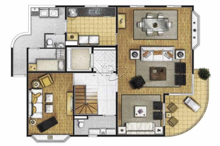 Serviço: Entrada Serviço | Cozinha | Área de serviço | Dormitório serviço | Bwc serviço.