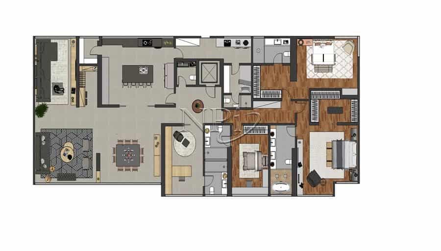 310 m2 | 4 suítes | 03 vagas - Living com 03 ambientes amplos e bem demarcados