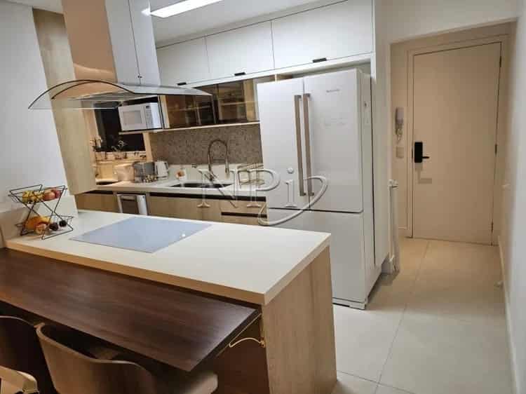 A cozinha americana com armários embutidos é prática e funcional, aproveitando ao máximo o espaço e garantindo uma organização impecável. A integração da cozinha com o living facilita o dia a dia e torna o ambiente perfeito para quem gosta de cozinhar e socializar ao mesmo tempo, sem perder o estilo.