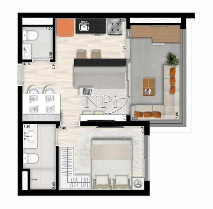 O projeto possui apartamentos amplos e espaçosos, com diversas opções de plantas que variam entre 35m², 43m², 67m² e 93,5m² com unidades de studio, 1 e 2 dormitórios.