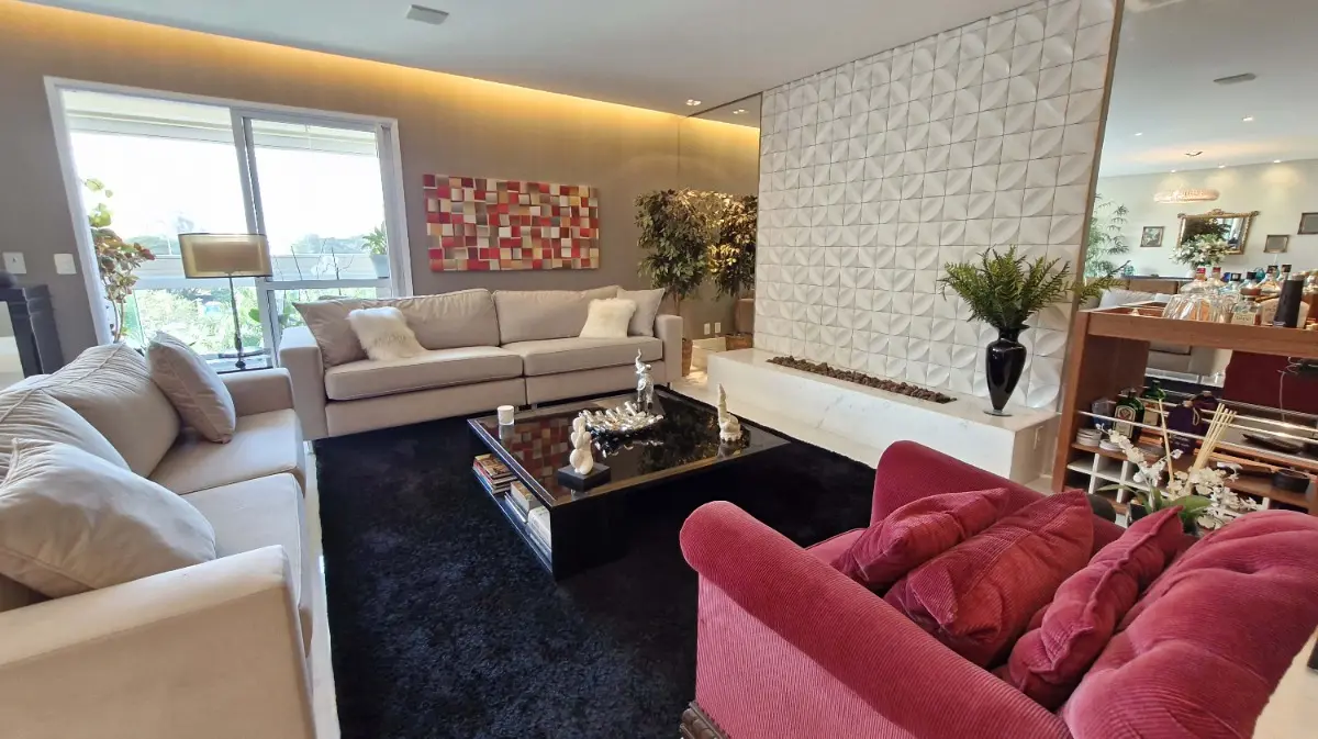 Apenas 2 apartamentos por andar o apartamento tem 240 m², 3 suítes, 6 banheiros e 4 vagas. O imóvel possui armários embutidos , amplo living, cozinha gourmet, varanda gourmet com churrasqueira, sala da TV, dependências de empregada, ambientes com ar condicionado, caixas de som embutidas na sala, varanda, lavado e suíte master..